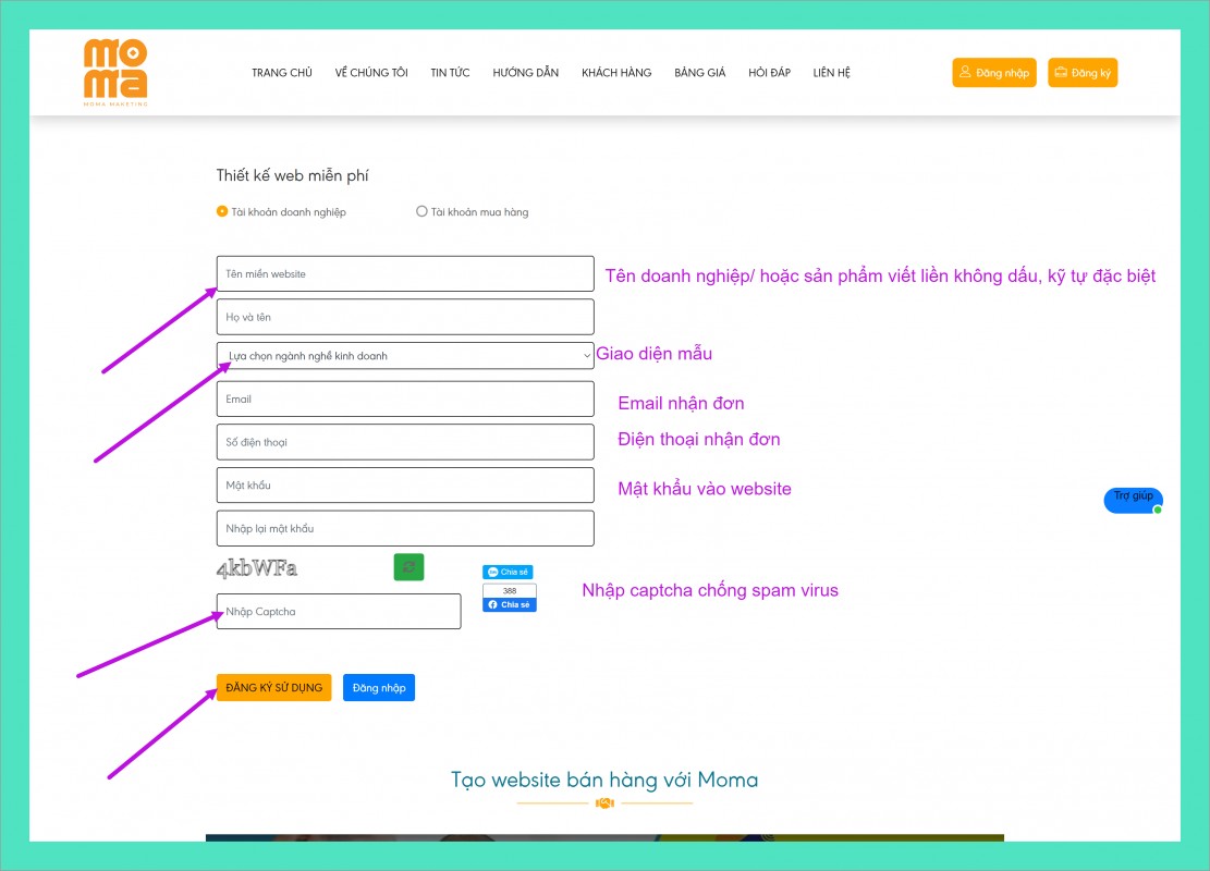 Xem hướng dẫn giải pháp tạo website bán hàng miễn phí moma tại đây