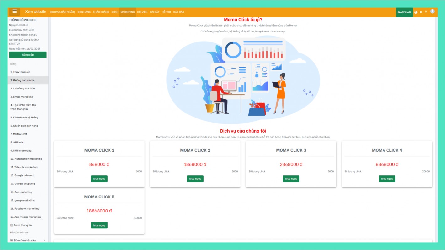 - Truy cập vào trang đăng ký miễn phí phần mềm SEO Moma tại đây.