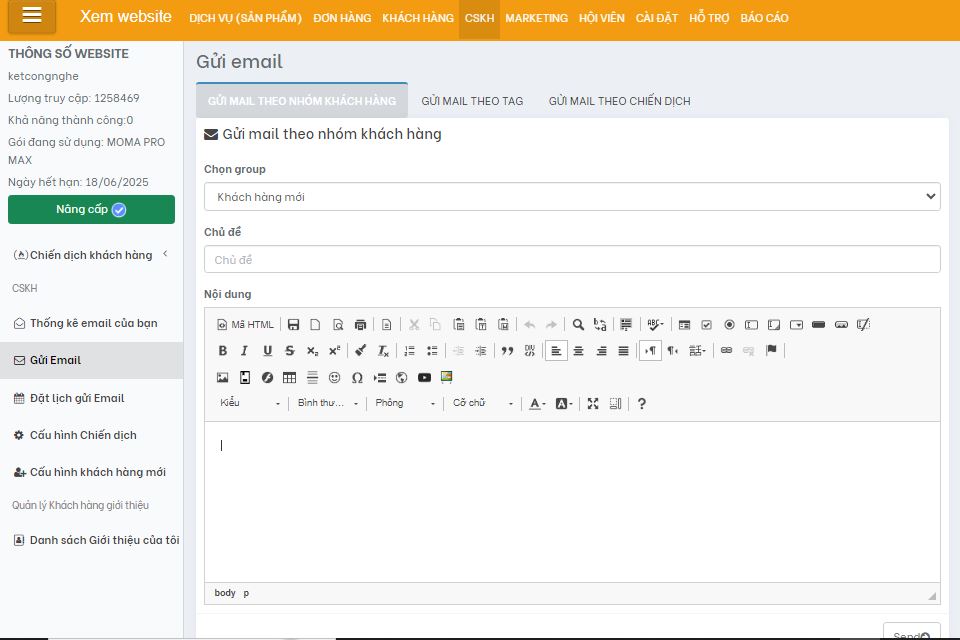 Bước 3: Gửi và chăm sóc từ phần mềm gửi Zalo ZNS moma