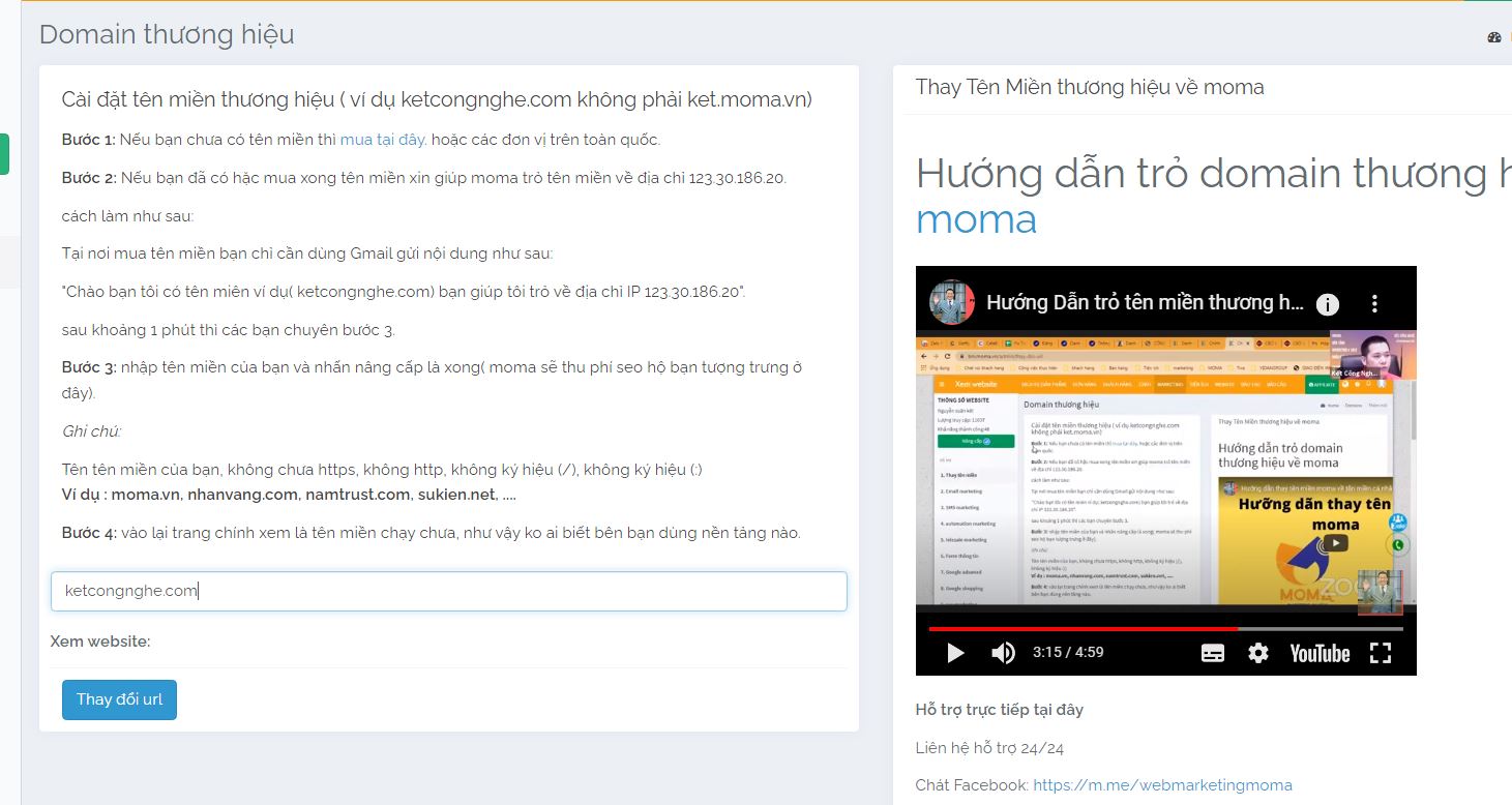 HƯỚNG DẪN THAY TÊN MIỀN RIÊNG DOANH NGHIỆP TRÊN MOMA