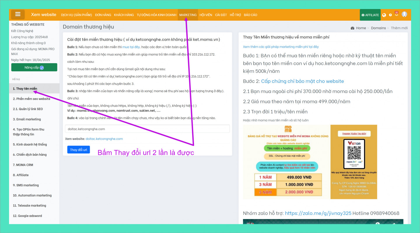 • Hoặc nhờ đội ngũ MOMA mua giúp tên miền và cấu hình hộ (liên hệ Zalo: 0988940068)