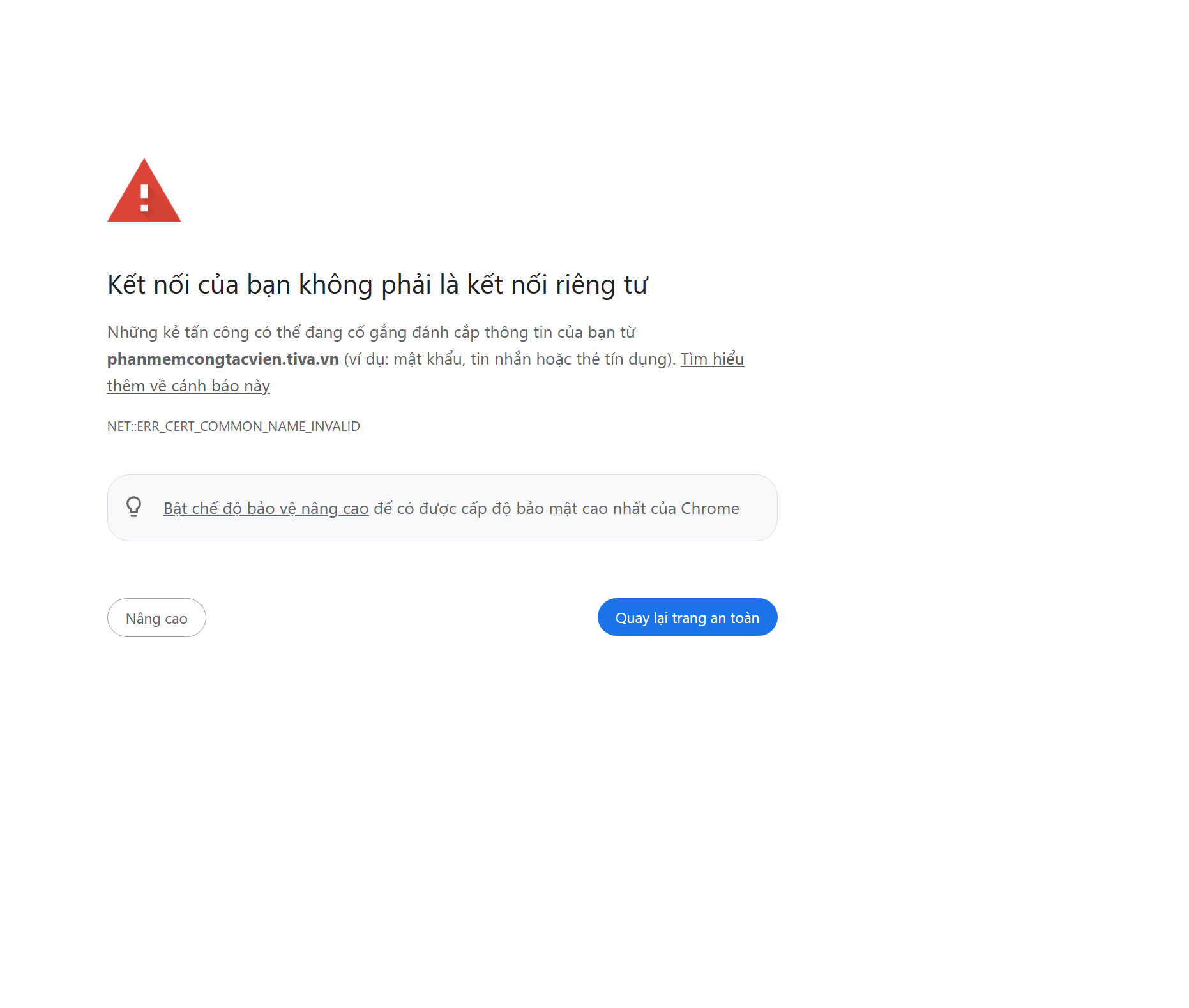 1. Thiếu chứng chỉ bảo mật khi thay tên miền