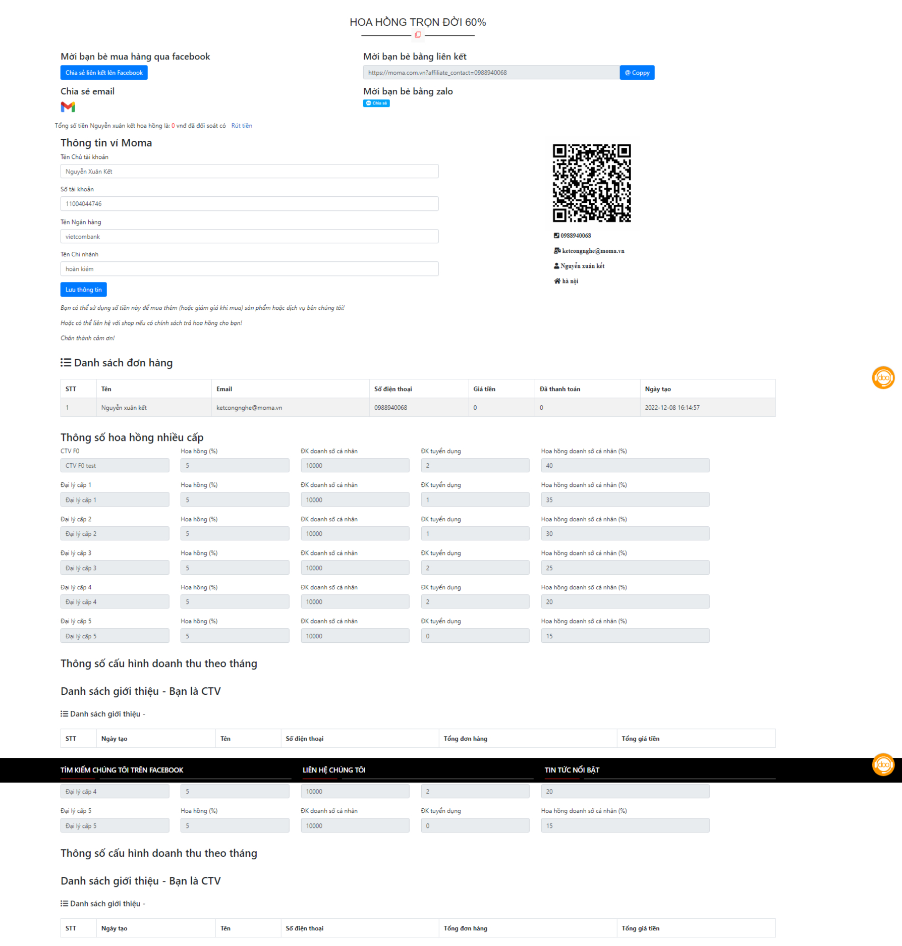 - Hoa hồng cá nhân là hoa hồng tự mình bán được sản phẩm ví dụ bán được 1 triệu thì hoa hồng 150.000đ