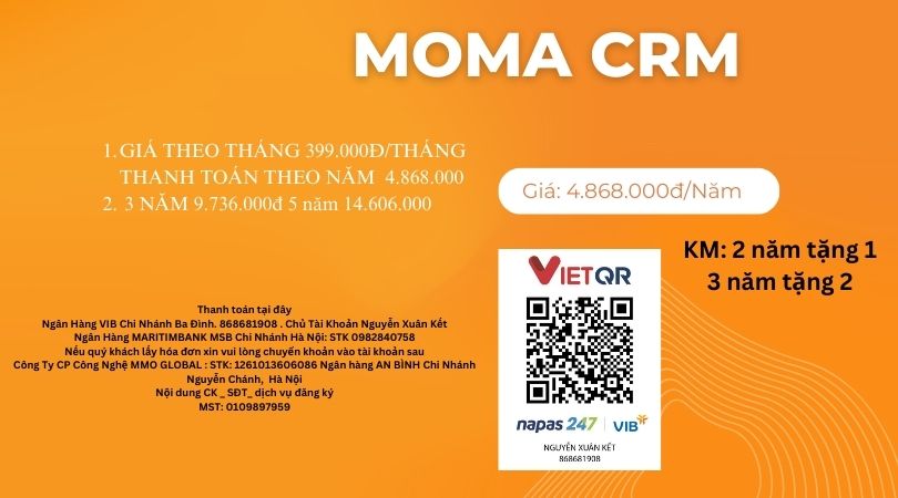 Moma CRM là giải pháp lý tưởng cho các doanh nghiệp vừa và nhỏ muốn nâng cao hiệu quả quản lý khách hàng mà không cần đầu tư quá nhiều vào phần mềm. Với các tính năng phong phú và dễ sử dụng, Moma CRM hứa hẹn mang lại nhiều lợi ích và hỗ trợ đắc lực cho doanh nghiệp trong quá trình phát triển.