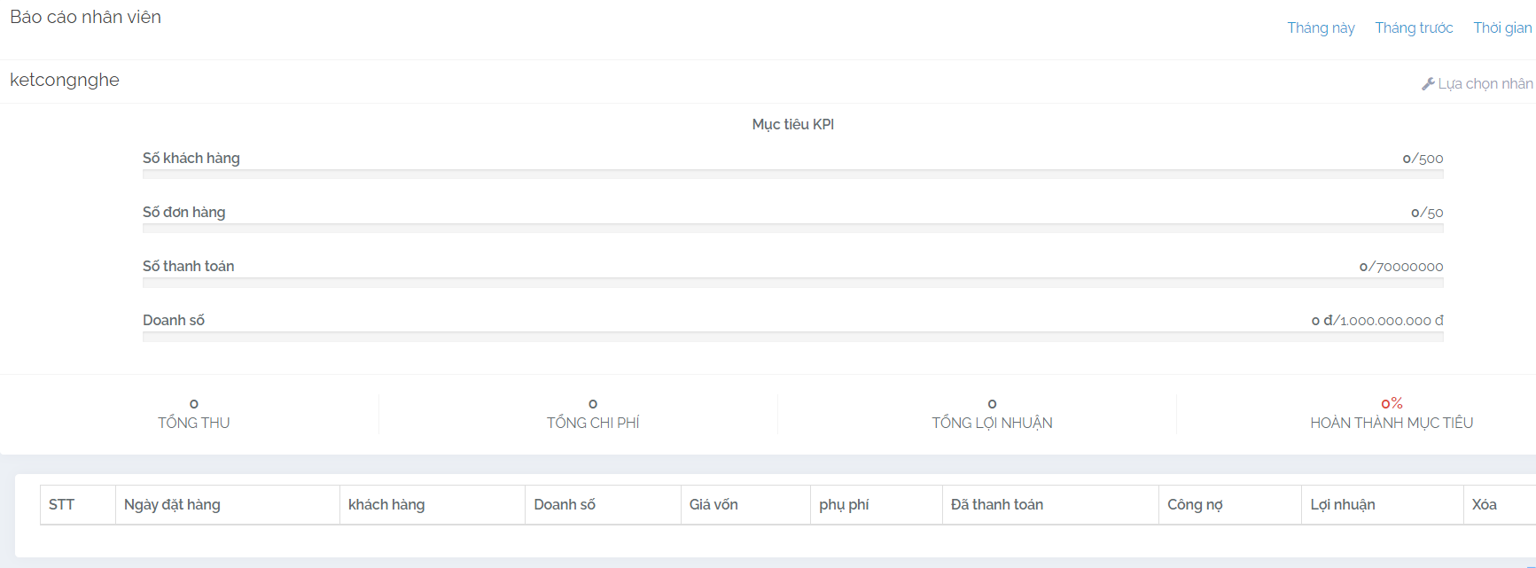 • Báo cáo nhân sự (Hoạt động, hiệu suất nhân viên, trạng thái công việc, thời gian hoàn thành công việc, báo cáo cuộc gọi, báo cáo cuộc hẹn...)