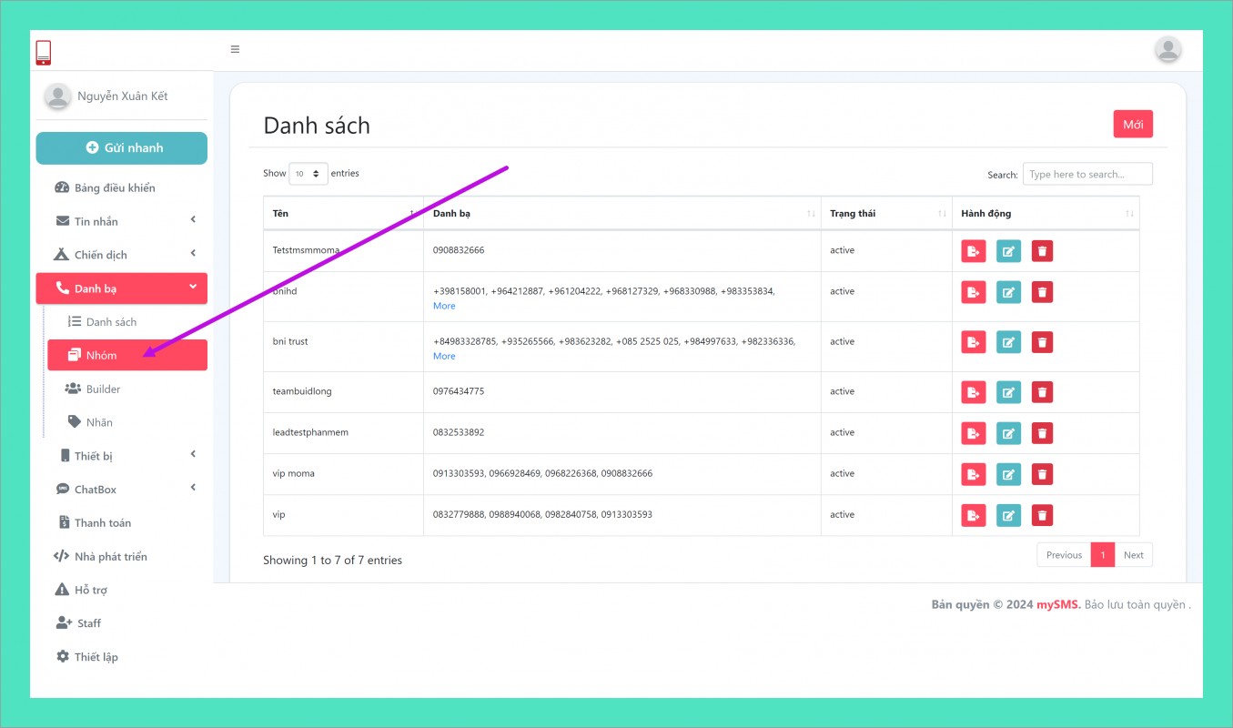 Trường hợp 2: Bạn vào Data khách hàng MOMA CRM chỉ việc kết nối gửi tin đi là xong không hạn chế khách hàng tải lên