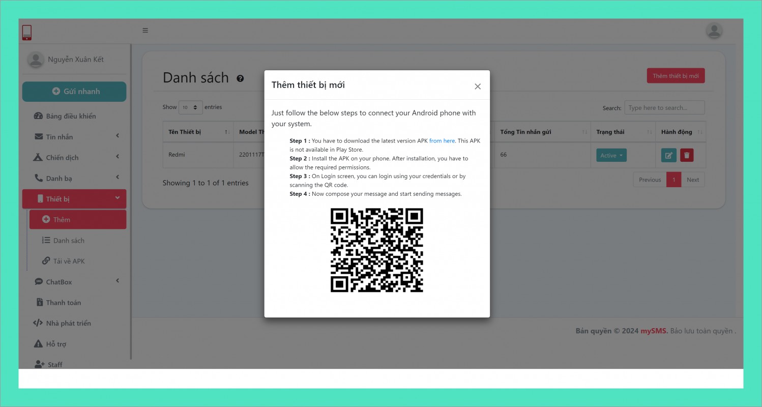 - app: "tải APK và cài đặt từ link đã đưa" như hình ấy  https://mysms.vn/uploads/mysms-client-v1.4.1.apk