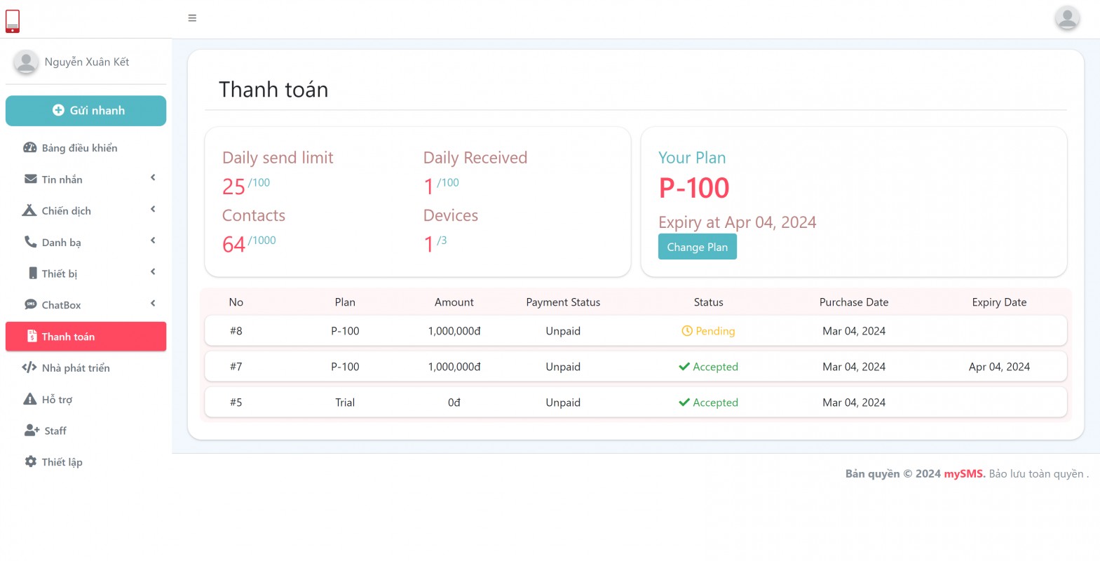 • Sau khi xác minh email, bạn cần nạp tiền vào tài khoản để có thể gửi SMS.