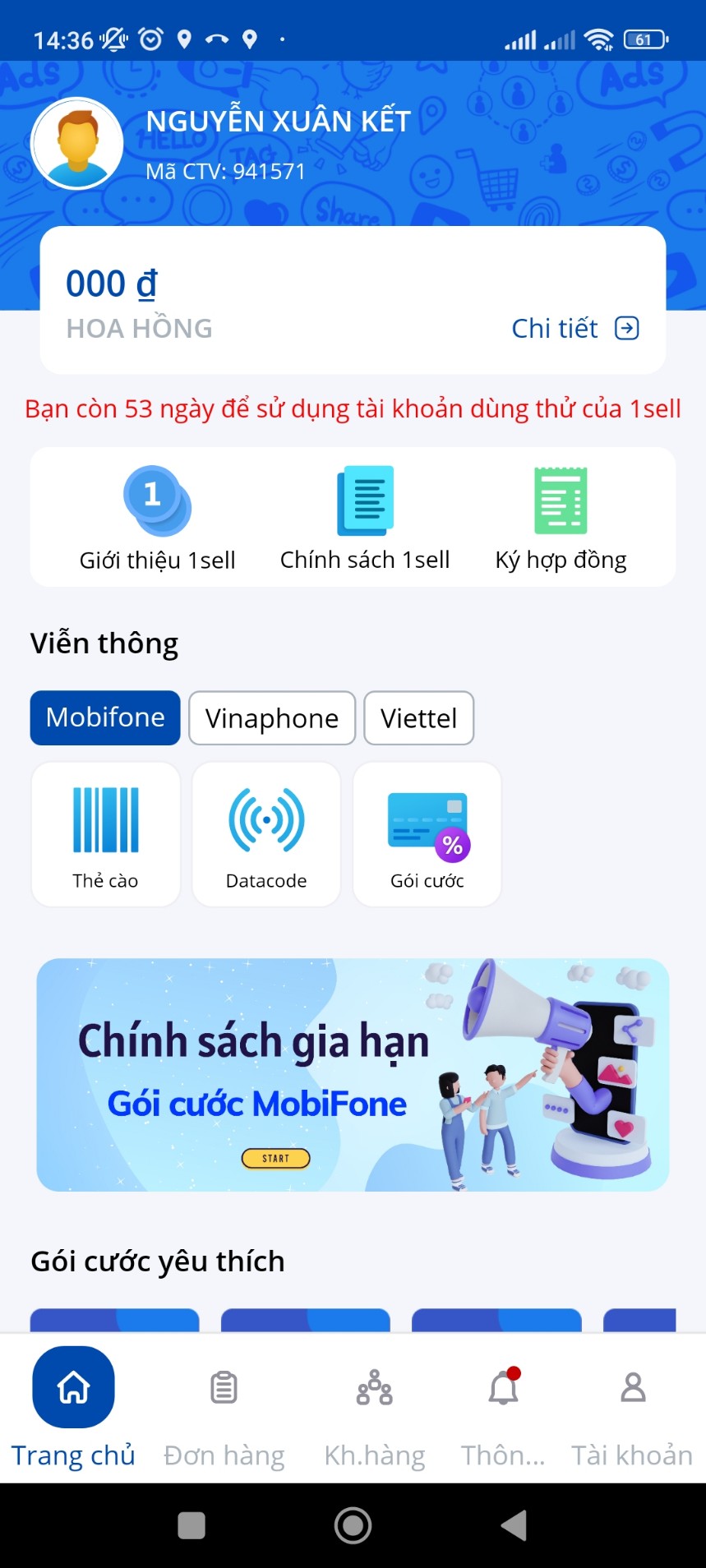 - Khách bạn mua gói cước nhưng người ta không thích tự thanh toán mua qua  bạn bạn dùng tiền trong app mua